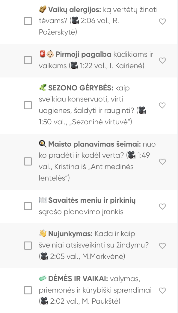 • 📋 Laiką taupančios atmintinės pagal vaiko amžių ir planavimo įrankis